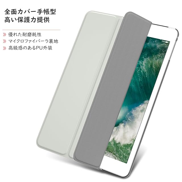 「上質な素材採用」蓋は手触りが良く高級感のあふれる耐久性に優れた高級PUレザーで、バックケースは頑丈で耐摩耗性の高い半透明のPC素材を採用しており、内部材質は液晶表面に優しいマイクロファイバーの仕上がりで、タブレットに最高の保護力を提供してくれます。