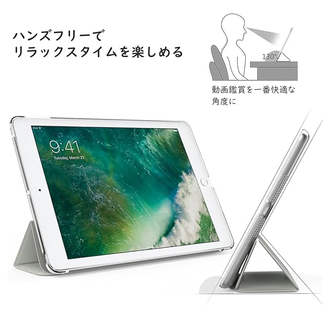MoKo iPad 9.7 ケース 2018/2017 iPad 9.7型保護カバー スタンドケース オートスリープ対応 高級PUレザーPC製 裏地マイクロファイバー 軽量 薄型 傷つき/汚れ防止 スマートケース マット半透明 Silver | つむぎ屋