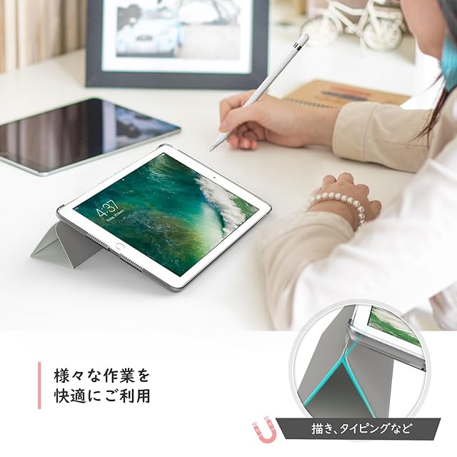 「適用機種」 iPad 9.7 2018/2017(第6/5世代用)に対応できる手帳式のケースです。(モデル番号:1822/A1823/A1893/A1954)薄型かつ軽量化にした設計で、取り扱いやすくiPadにピッタリフィットできる見栄えも保護力も両立させたスマートケースです。iPad Pro 9.7に対応できません。ご購入になる前に、機種をしっかりと確認してください。