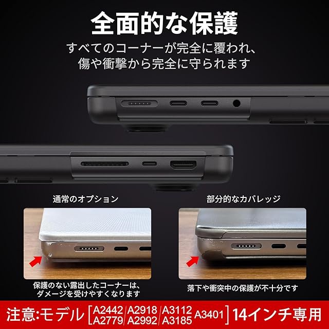 【注意:モデルをご確認ください】MacBook Pro 14インチ 2024-2021年リリースのM4 M3 M2 M1 Pro / Maxチップ(モデル:A3112 / A3185 / A3401 / A2992 / A2918 / A2779 / A2442)にのみ互換性があります。 他のモデルには適合しません。 ご購入前にMacBookの裏側にあるモデル番号【Axxx】をご確認ください。