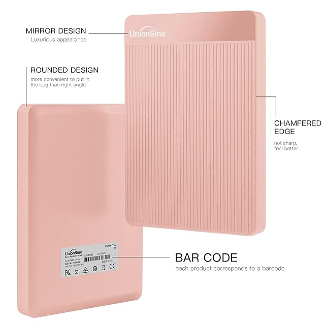 UnionSine 超薄型外付けHDD ポータブルハードディスク 1TB 2.5インチ USB3.0に対応 PC/Mac/PS4/XBox適用 (ピンク)HD2510