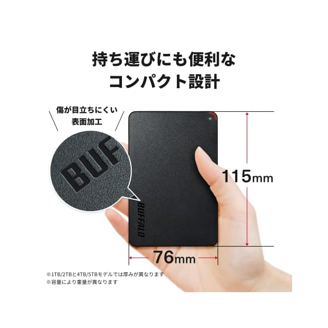 BUFFALO ミニステーション USB3.1(Gen1)/USB3.0用ポータブルHDD 1TB 【 iPhone 16 / 16 pro 動作確認済み 】HD-PCFS1.0U3-BBA | つむぎ屋