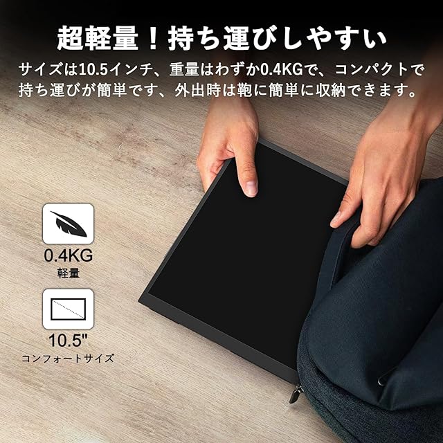 モバイルモニター 10.5インチ 解像度 1920*1280 モバイルディスプレイ 3:2画面比 IPS液晶パネル 薄型 軽量 60Hz 小型モニター HDRモード スピーカー内蔵 VESA対応 500nits 高輝度 100%sRGB広色域 45°調整可能ブラケット 付き Type-C/HDMI接続可PS4/Switch/PC/Macなど対応