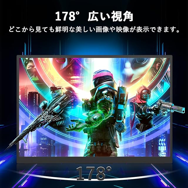 【上下のデュアルスクリーン設定は】モバイルモニターは178°の視野角を持つIPSパネルを採用しており、どの角度からでも鮮明な画像やビデオを視聴できます。十分なFHD(1920*1080)解像度を持ち、アスペクト比:16:9をサポートし、100%sRGB色域、コントラスト1000:1、300cd/m2の明るさで。