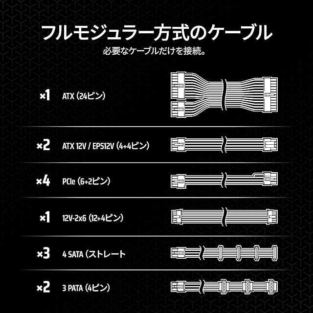 全てのケーブルが着脱可能なフルモジュラー式のATX電源ユニットです。
