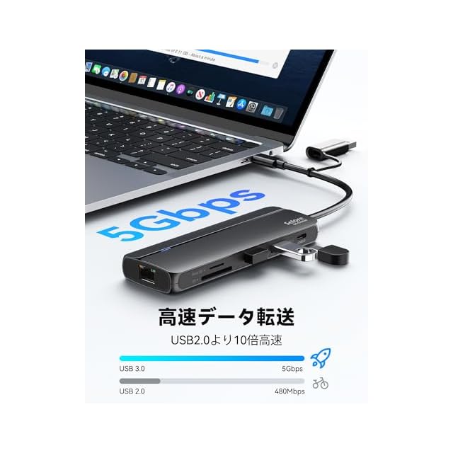 【USB AとType-C変換アダプタ付】:Selore USB C HUBはUSB-CとUSB-A変換アダプタが付属しています。従来のUSB C ドッキングステーションとは異なり、USB A/Cを使用すると、超高速のデータ転送速度と電力供給を楽しむことができます。アダプターは、高速ファイル転送とデバイスの急速充電に最適です