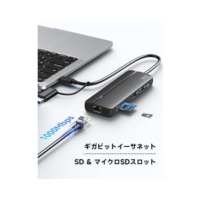 【100W PD急速充電 &LANポート搭載】※PD給電時は別途PDアダプタが必要です。持ち運びやすいモバイルタイプのドッキングステーション。usbハブを使用しながらパソコンに快速充電(最大100Wの入力87Wの出力)に対応し、同時に接続された複数の周辺機器を充電することができます。充電切れの心配がありません。本体は放熱性に優れたアルミニウム合金製なので、発熱も抑えられます。なお、RJ45 イーサネット(1000BASE-T)に対応しているので、1000Mbpsネットワーク環境にも対応でき、USBケーブル1本で有線LAN接続をすることができます