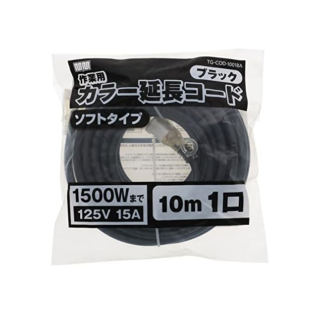 髙儀(Takagi) 【燕三条ブランド】 M·M カラー 1口 1500Wまで 125V 15A 1個口 電源タップ コンセント 電源ケーブル 延長ケーブル 電源コード たこあし 延長電源 電工 延長コード ブラック 10m TG-COD-1001BA | つむぎ屋