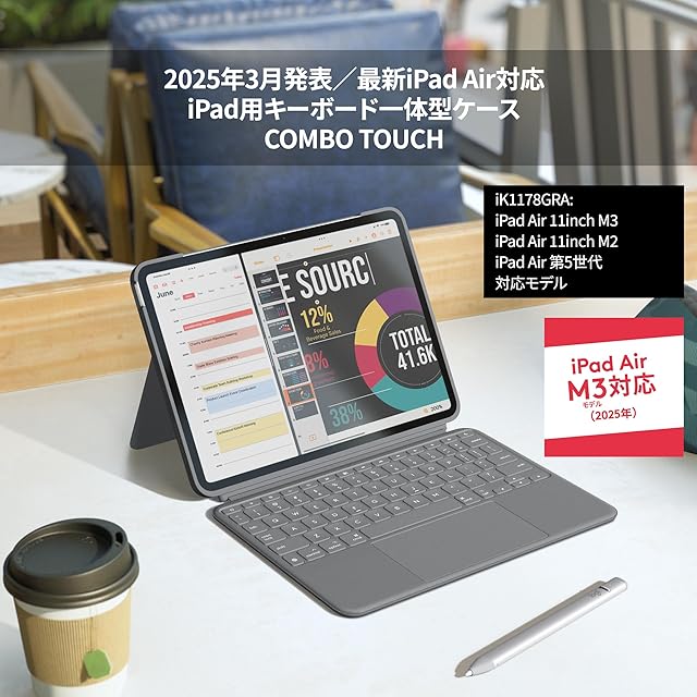 ロジクール Combo Touch iPad Air 11インチ M3 & M2 iK1178GRA キーボード付き ケース 軽量 日本語配列 キーボード スマートコネクタ オックスフォードグレー 国内正規品 | つむぎ屋
