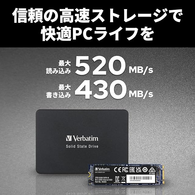 Verbatim バーベイタム 内蔵SSD M.2 SATA 2280 Vi560シリーズ 256GB