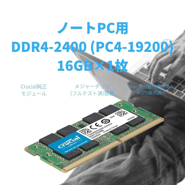 CFD販売 ノートPC用メモリ DDR4-2400 (PC4-19200) 16GB×1枚 (16GB) 相性 無期限 260pin Crucial by Micron D4N2400CM-16G | つむぎ屋