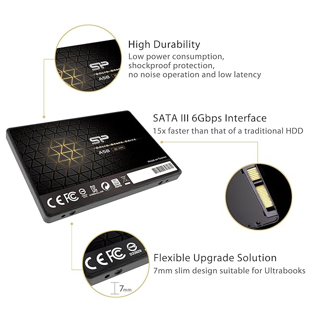 シリコンパワー 1TB SSD 3D NAND A58 SLCキャッシュパフォーマンスブーストSATA III 2.5インチ7mm SU001TBSS3A58A25CA