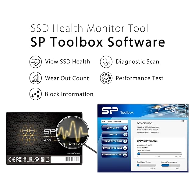 無料のSP Toolboxソフトウェアで健康状態の監視、診断、およびウェアレベルリングの情報が取得可能
