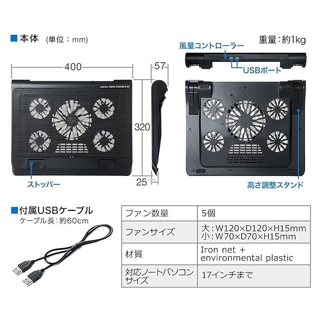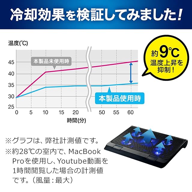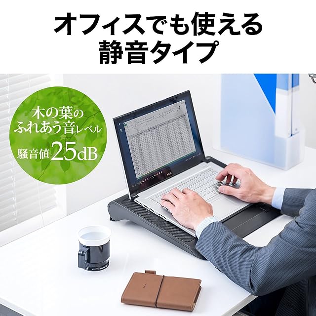 ファン稼働時でも騒音値はたったの25dBで、パソコン作業の邪魔をしません。●厚みは約1.5cm。スペースを圧迫せず、さりげなく設置できます。