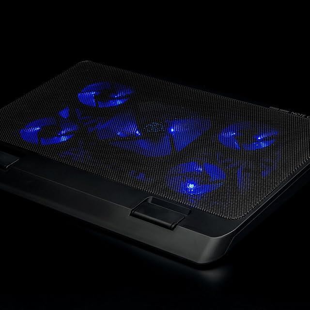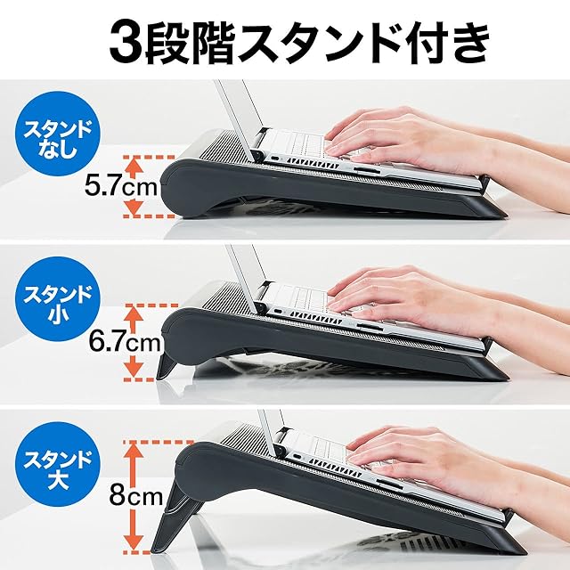 底面の内蔵スタンドを立てることでクーラーに傾斜をつけられます。視線が上がり、自然によい姿勢に導きます。●電源と接続するとブルーのLEDが光り、クールな雰囲気を演出します。※LEDを消灯することはできません。