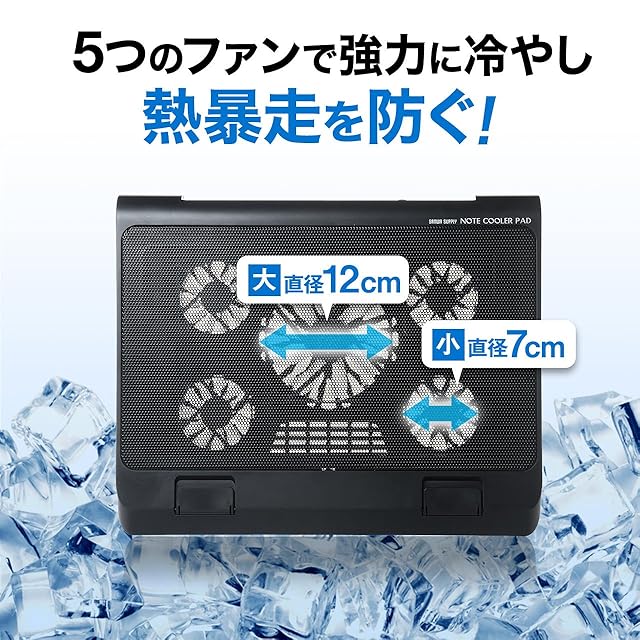 4つのファンでノートパソコンの熱暴走を防ぐ、ノートパソコンクーラーです。放熱性の高いメタルパネルを採用しており、パソコン底面にある吸排気口を塞ぎません。