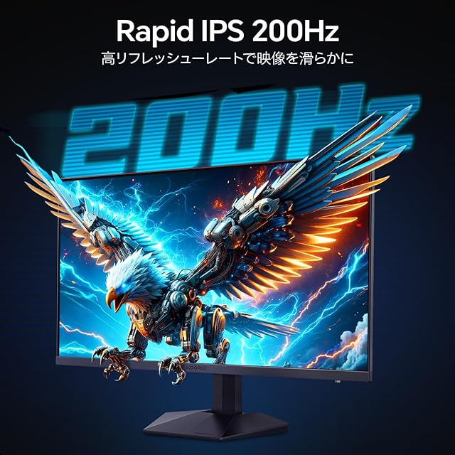 【200Hz高リフレッシュレート・1ms応答速度】最大200Hzリフレッシュレートに対応でき、1秒間あたり200枚の画像表示と1ms高速応答速度で、FPSや格闘ゲームの高速動作もなめらかに再現、より滑らかでスムーズな映像をお楽しめます。Adaptive Syncテクノロジーも対応(FreeSync&G-Sync対応)で、画面のティアリングやスタッタリングを解消できて、ゲーミングモニターとして圧倒的なゲームプレイを与えられます。