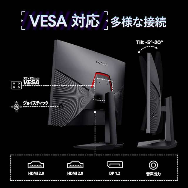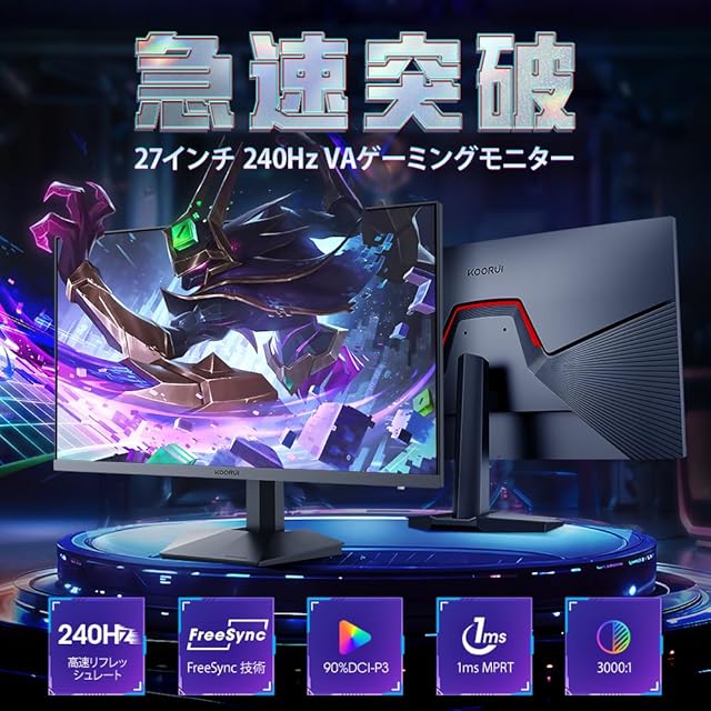 KOORUI ゲーミングモニター 27インチ 240Hz 1ms(MPRT) 応答速度 FHD(1920x1080) sRGB 100%/DCI-P3 90%/Adaptive Sync対応/HDMIx2/DisplayPort/VESA対応 pcモニター 傾き調整 GN02 | つむぎ屋