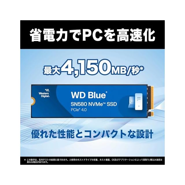 Western Digital ウエスタンデジタル 内蔵SSD 2TB WD Blue SN580 (読取り最大 4,150MB/秒) M.2-2280 NVMe WDS200T3B0E-EC 【国内正規代理店品】