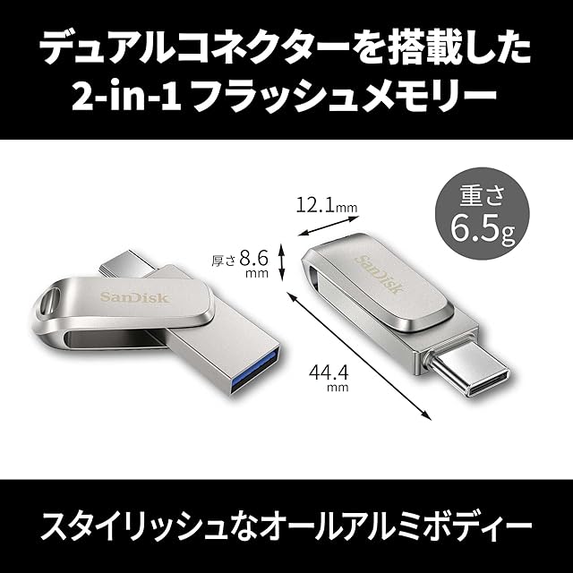 【 サンディスク 正規品 】メーカー5年 USBメモリ 1TB Type-C & Type-A iPhone15動作確認済み 回転収納式コネクター SanDisk Ultra Dual Drive Luxe 読出最大400MB/秒 SDDDC4-1T00-J35 | つむぎ屋