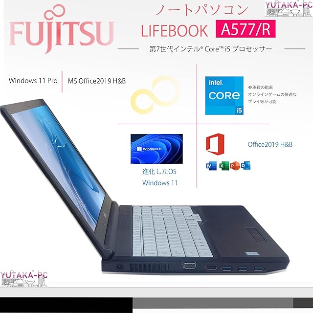 【整備済み品】ノートパソコン FUJITSU A577 MS Office2019 H&B/SSD 512GB / 第7世代 Core i5-7300U メモり 8GB / SSD 512GB / HDMI / 15.6inch / DVD/WIFI/Bluetooth / Windows11 / LIFEBOOK