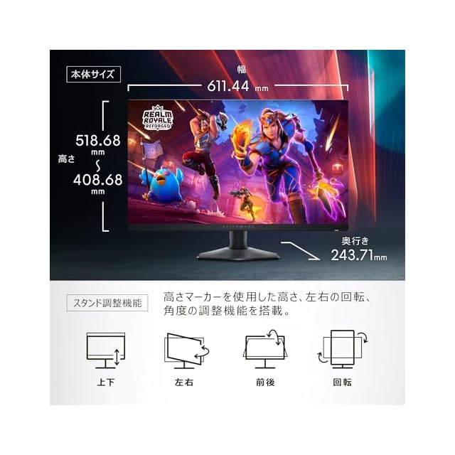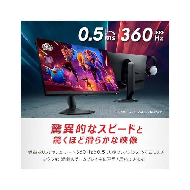 Dell AW2724HF 27インチ Alienware ゲーミングモニター(無輝点3年/FHD/Fast IPS,非光沢/DP×2,HDMI/sRGB 99%/縦横回転,高さ調整/0.5ms/360Hz/FreeSync Premium,HDR 10)