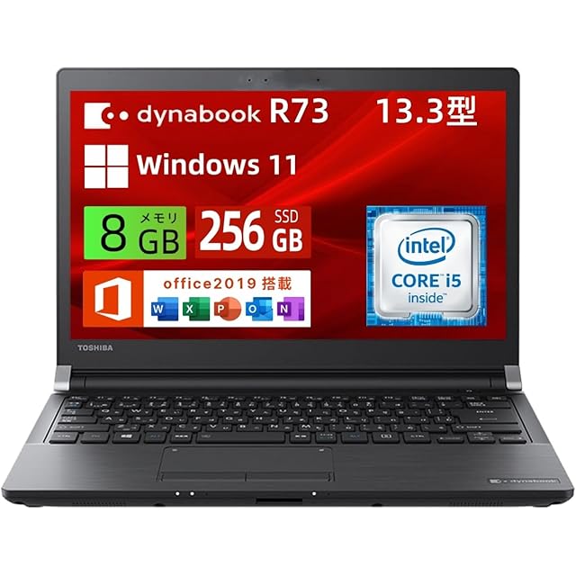 【整備済み品】ノートパソコン 東芝 dynabook R73 13.3インチ HD windwos 11&office 2019 搭載 ノートPC 第7世代 Core i5/メモリ 8GB/SSD 256B/WIFI HDMI VGA 搭載 パソコン
