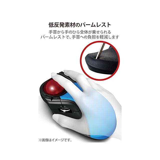 直径52mmの大型トラックボールが実現する想像を超えた操球感。長時間のPC作業における手首への負担を減少するパームレストを搭載した、人差し指・中指操作タイプのトラックボールマウス“HUGE"。