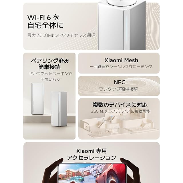 シャオミ(Xiaomi) WiFi 無線LANルーター WiFi ルーター AX3000 NE Wi-Fi 6 デュアルバンド 最大3000Mbps メッシュWi-Fiシステム wifi中継 1ユニット | つむぎ屋