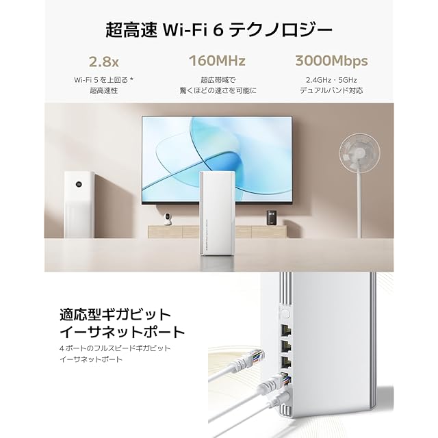 ✅高速のWi-Fi 6で快適な通信体験を実現:Xiaomi メッシュシステム AX3000 NEはWi-Fi 6に対応しており、複数のギガビットイーサネットポートを備え、ワイヤレスデバイスにも有線デバイスにもギガビットの速度の接続を提供します。