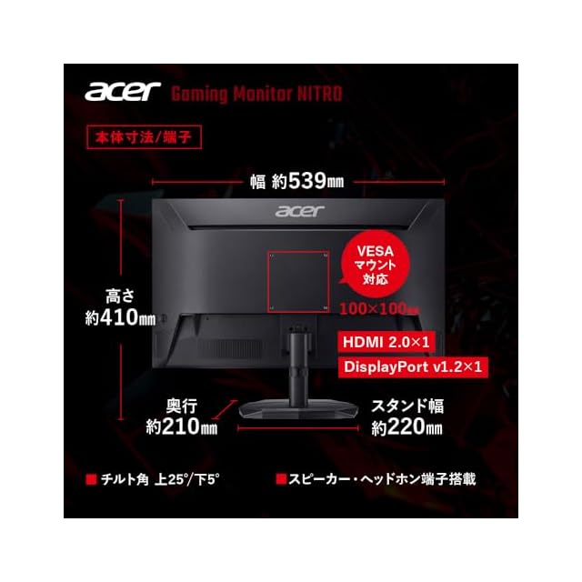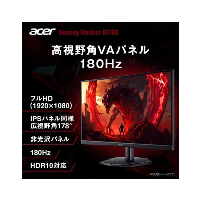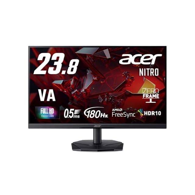 Acer ゲーミングモニター 23.8インチ VA フルHD 非光沢 180Hz 0.5ms NTSC 72% AMD FreeSync HDR10 HDMI 2.0 DisplayPort スピーカー・ヘッドフォン端子 搭載 Nitro KG241YP3bmipx