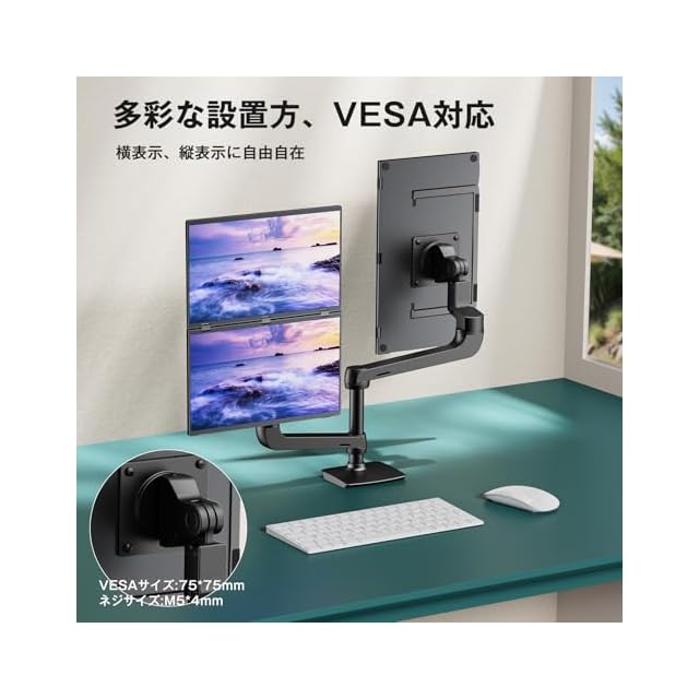 【360°回転・VESA対応】重力センサー搭載で、モニターが360°回転可能。ミーティング時には、画面を半分に折りたたみ、向かい合わせに座る同僚に画面を自動的に180°回転させることで、視認性を高め、共有が簡単になります。VESA規格(75mm)にも対応しており、モニターアームや壁掛けにも簡単に取り付け可能です。これにより、立って作業する時や座って作業する時、また寝転んで使う際でも、18.5インチの大画面で快適な視覚体験を楽しむことができます。