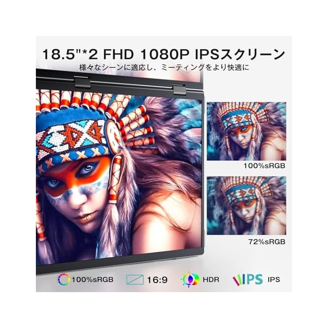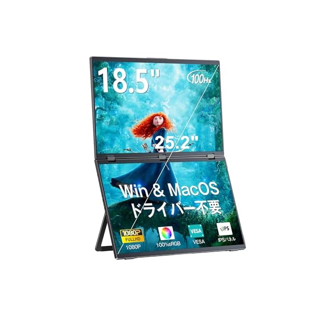 KEEPTIME デュアル モバイルモニター 18.5インチ ドライバー不要 2画面ディスプレイ 自立型 デュアルディスプレイ 100HZ 折り畳み FHD1080P トリプルモニター 自動回転 IPS液晶パネル フル機能Type-C MiniHDMI VESA対応 PC/Mac対応