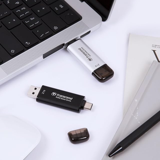 トランセンドジャパン トランセンド ポータブルSSD 2TB 高速 最大1050 MB/s 超小型,軽量11g Type-A/Type-C 両対応 PS4/PS5 動作確認済 USB 10Gbps シルバー TS2TESD310S