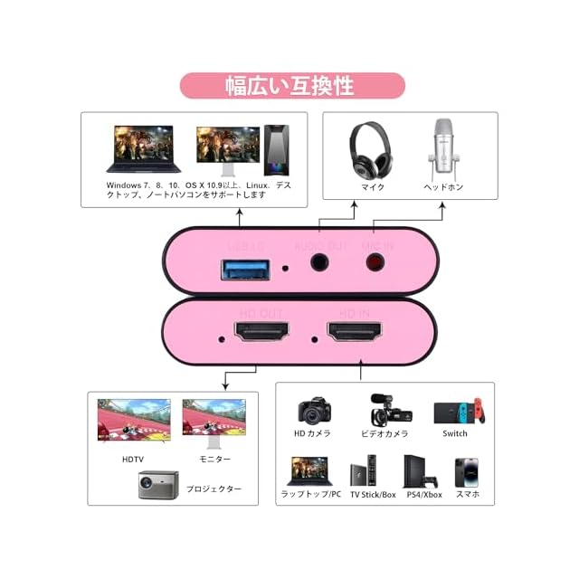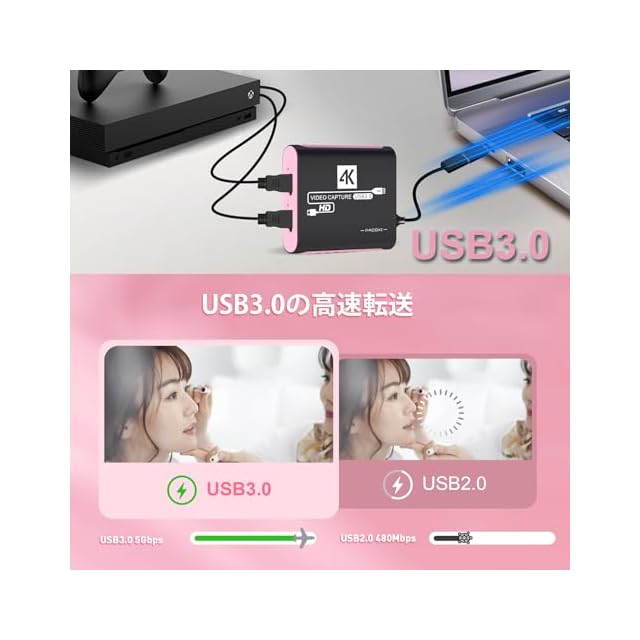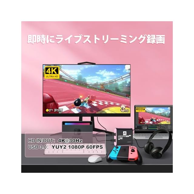 商品名:USB 3.0 ビデオキャプチャーボード switch対応(4K30FPS 入力、4K30FPS パススルー、1080P60FPS 録画 HDMI キャプチャーデバイス)、PC ゲームライブ配信録画、リアルタイムストリーミング、画面共有に適用 PS5/PS4、Xbox One、Wiiu、webカメラ対応 Win 7/8/10/11、Mac、Linux、Android に適用