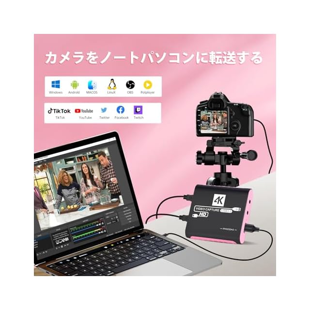 【広範な互換性】ビデオキャプチャーは、Windows 7/8/10/11、Linux、Mac OS、Android 5.0以降などの多くのオペレーティングシステムと互換性があります。OBS、TikTok、YouTube、Twitter、Facebook Liveなどの複数のストリーミングプラットフォームに対応し、ユーザーがさまざまな環境でスムーズに使用できることをします。