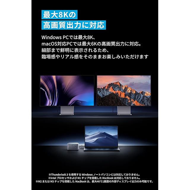 最大8Kの高画質出力に対応:Windows PCでは最大8K、macOS対応PCでは最大6Kの高画質出力に対応。細部まで鮮明に表示されるため、臨場感やリアル感をそのままお楽しみいただけます。