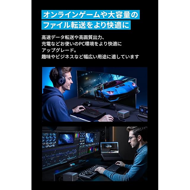 オンラインゲームや大容量のファイル転送をより快適に:高速データ転送や高画質出力、充電などお使いのPC環境をより快適にアップグレード。趣味やビジネスなど幅広い用途に適しています。