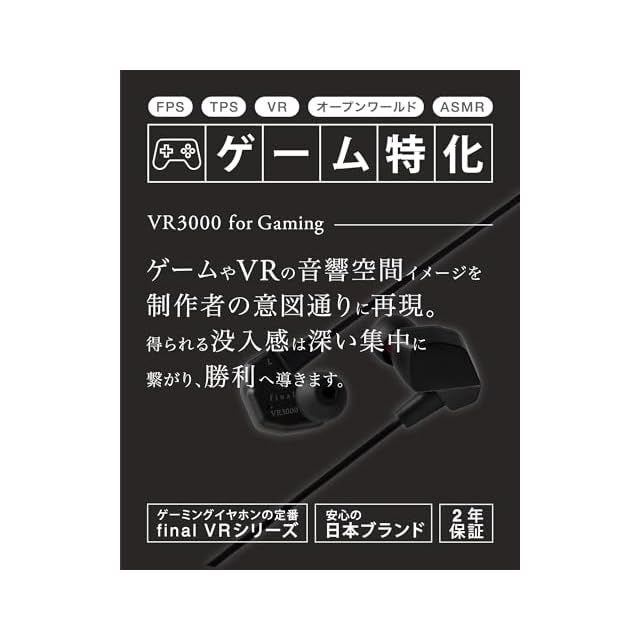 【限定色】final VR3000 for Gaming Matte Gray有線ゲーミング イヤホン・バイノーラル3Dサラウンド・マイク付き 【ゲーム/VR/バイノーラル/ASMR / 360オーディー推奨】 | つむぎ屋
