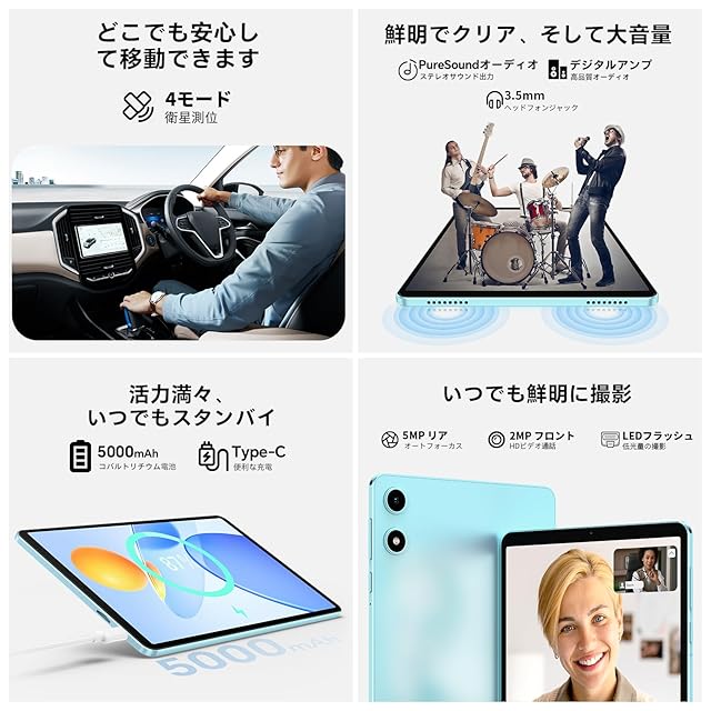 【タブレット 8.7インチ wi-fiモデル+BT5.0+5000mAh+USB-C充電+GPS】この8インチ タブレットの高速ACデュアルバンド2.4G/5G WiFiと効率的なBT 5.0ワイヤレス接続により、いつでもどこでもコミュニケーションとエンターテインメントが楽しめます、好きな動画をテレビ画面に無線投影することができます。◆5000 mAhバッテリーを搭載した大容量タブレットは、電力不足の心配もなく、長時間音楽を聴いたり好きな動画を見たりすることができます。Type-C充電は両面で使用できる。さらに、OTG対応で外部デバイスとの連携もスムーズ。◆前面には2MPのカメラ、背面には5MPの自動フォーカス対応リアカメラ(AF機能)を搭載。写真や動画の撮影にもこだわりが詰まっています。◆8インチタブレットは GPS+GLONASS+Beidou+Galileoの4大衛星測位システムに対応可能、位置情報の取得が可能で、ナビに便利です。独立した3.5mmのヘッドフォンジャックを備え、様々なニーズに対応できます。仕事・勉強・外出先など、持ち歩きにも便利です。