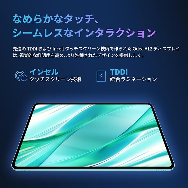 12インチタブレット大画面で迫力の2K画質 普通の10インチタブレットより約1.6倍大きい画面で、178度の広い視野角を実現。2000x1200の高解像度だから、鮮明なのに省エネ。TDDIとIncell技術で、ゲームや動画もくっきり!大画面だから、家族や友達との映画鑑賞や仕事・勉強にもぴったりです