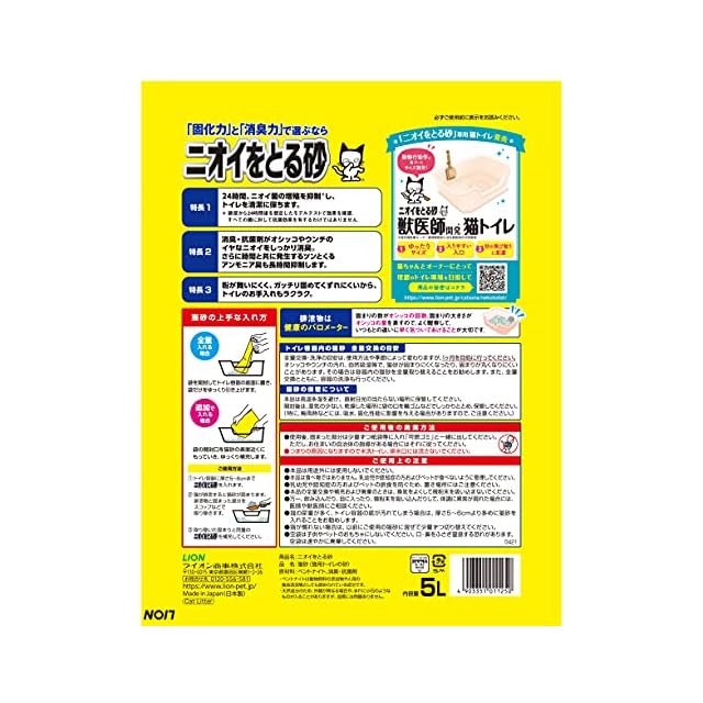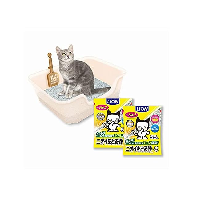ライオン 猫トイレ ニオイをとる砂 獣医師開猫トイレ + ニオイをとる砂 無香料 5.5L×2袋セット 消臭力が高い鉱物系 子猫から 成猫 シニア猫 大型猫まで 小さめ、大きめサイズにも LION PET | つむぎ屋