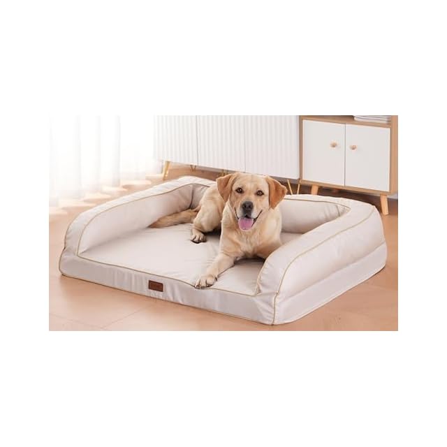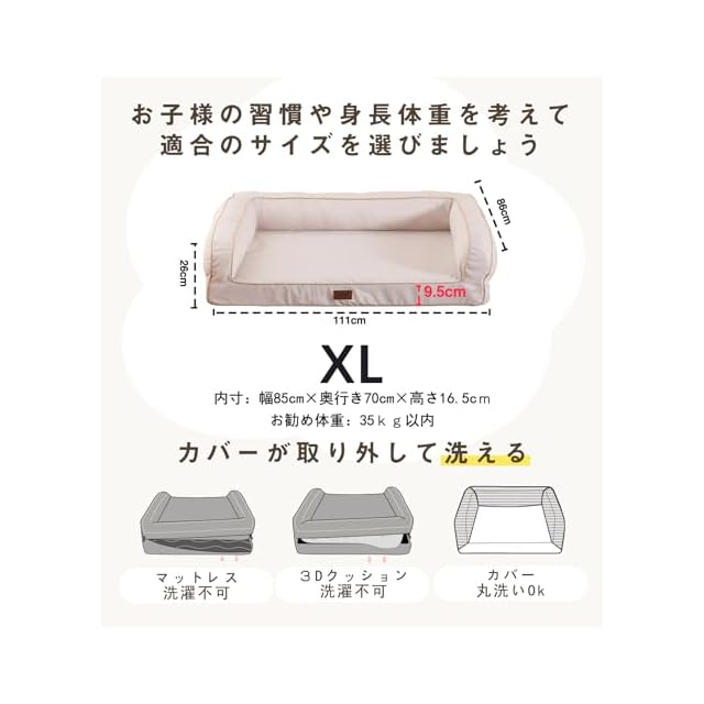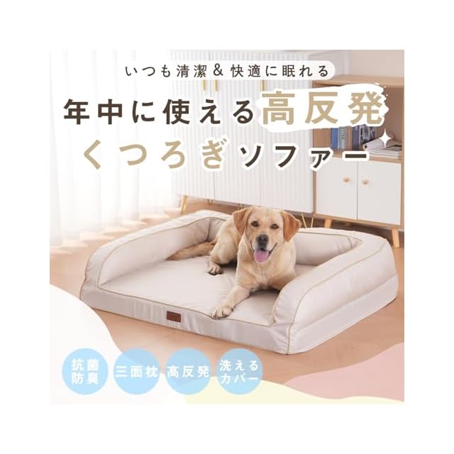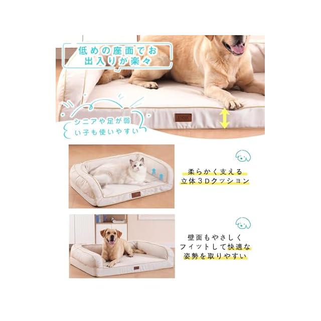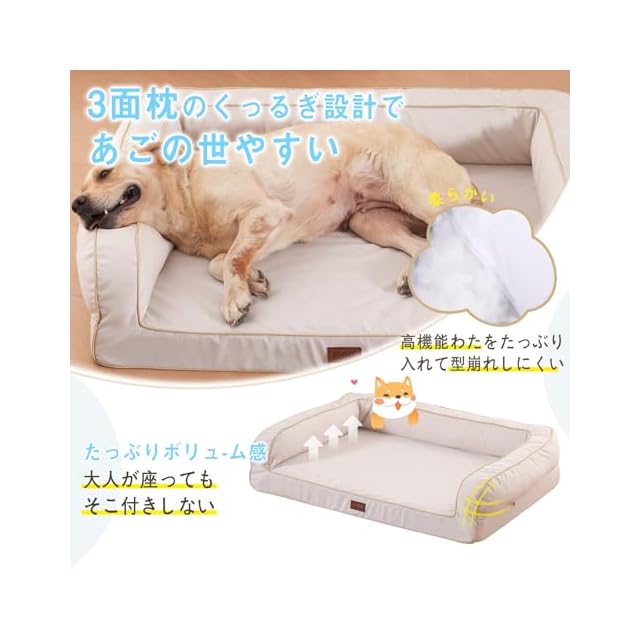 EMME 犬 ベッド 清掃しやすい 防水 ペットベッド ペットソファー 犬用ベッド 洗える さらさら 通気性 蒸れにくい ペットクッション 枕付き クッション性が 高反発 高齢犬 子犬 猫 多頭飼い 取り外せるカバー 滑り止め オールシーズン 中型犬 大型犬 洗える ペット用ベッド111X86X26cm アイボリー XLサイズ | つむぎ屋