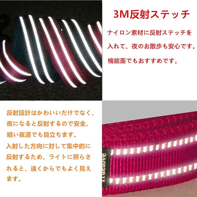 3M反射ステッチで夜道の散歩も安心、夜になると反射するので、暗い夜道でも目立ちます。入射した方向に対して集中的に反射するため、ライトに照らされると、遠くからでもよく見えます、機能面でもおすすめです。