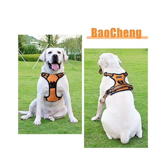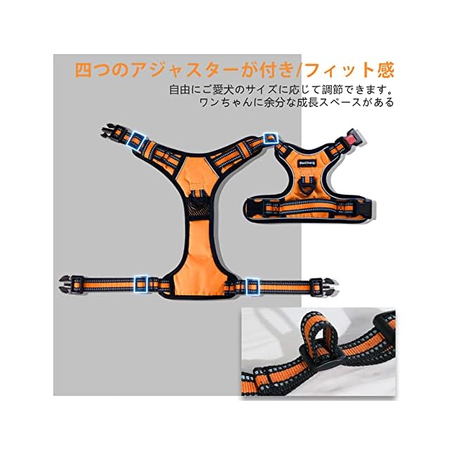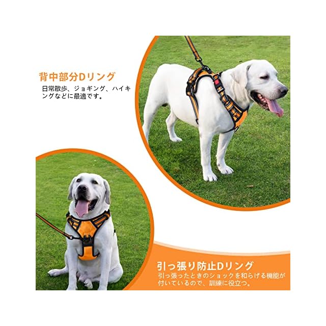 [2025最新型犬ハーネス]BaoCheng 犬用胴輪 小型犬/中型犬/大型犬ハーネス 犬用胴輪 引っ張り防止 アタマを通さず 咳き込み軽減 サイズ調整可能 夜間反射材 抜けない 通気性 簡単着脱 おしゃれ 安全 しつけ用 訓練 歩行補助 散歩 可愛い(オレンジ,L) | つむぎ屋
