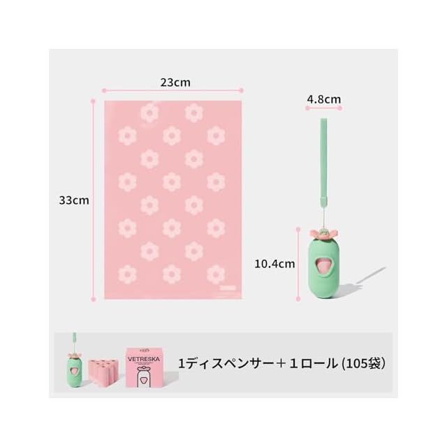 VETRESKA ペット用ウンチ処理袋 ぽいたくんうんち袋と取り出し容器 犬うんち袋 防臭袋 猫 トイレ 袋 臭いが漏れない 生分解性 猫砂ごみ袋 サニタリー 袋 お出かけの携帯ゴミ袋 お花の香りつき消臭袋(7ロール 105枚)