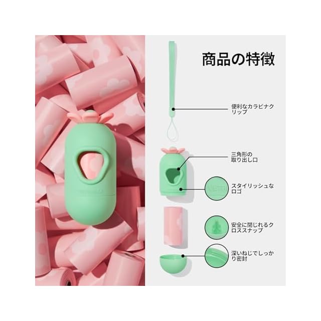 ✅【お得なセット】うんちバッグホルダー1個取り出し容器+7ロールうんち袋 が入っています。 各ロールに15枚、合計で105枚のペット うんち袋がセットに含まれています。