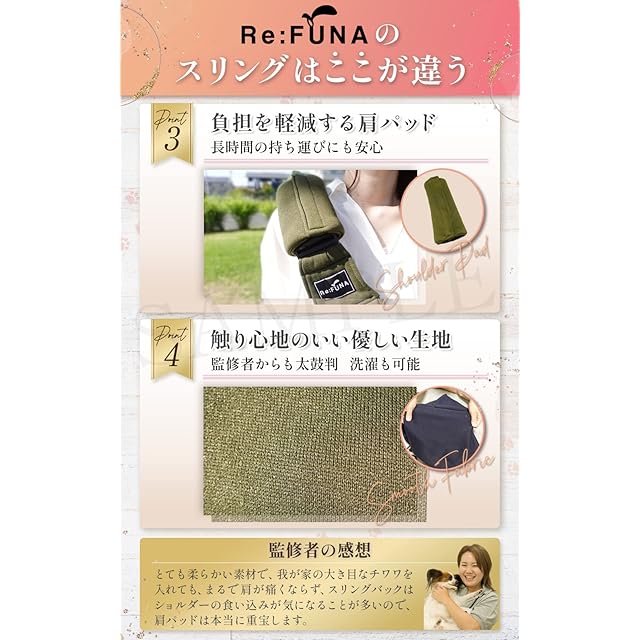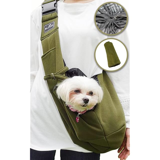 【ペット専門学校講師監修】 ReFUNA ペットスリング 肩パッド付き 犬 抱っこ紐 長さ調節可能 ドッグスリング メッシュネット 飛び出し防止 10kg ペットバッグ キャリー 猫 (カーキ) | つむぎ屋
