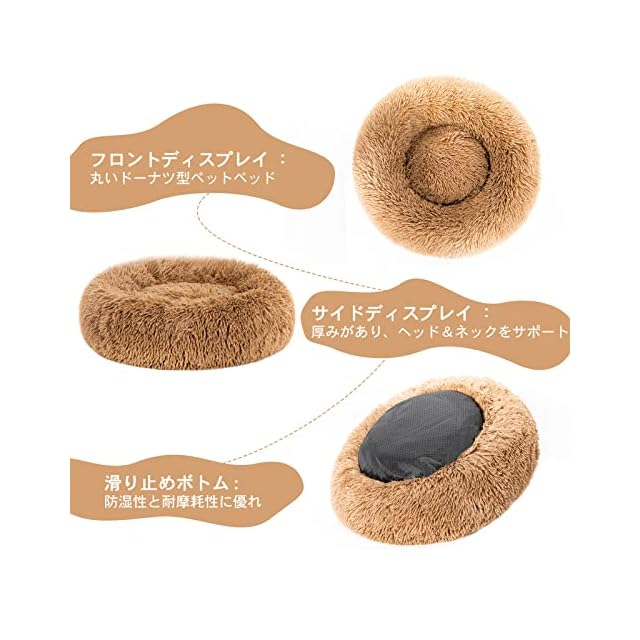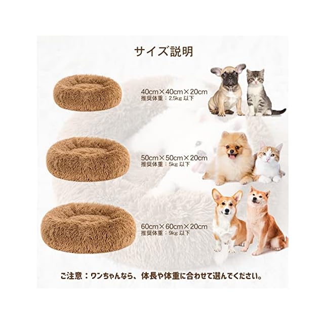 Epochtech 猫ベッド 犬ベッド ふわふわ ラウンド型 暖かい ペットクッション 滑り止め 防寒 洗濯可能 子犬 猫用 サイズ選択可 カラー選択可 取り外し不可 (40cm, カーキ/取り外し不可) | つむぎ屋