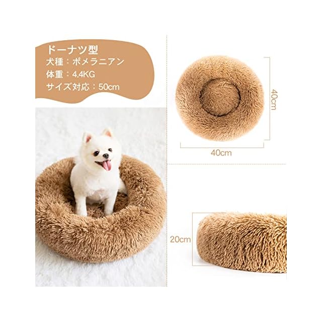 【商品仕様】サイズ:直径40cm 高さ:約20cm (推奨体重2.5Kg以下)、素材:ふわふわして暖かいPP綿で填充+4cm長毛フランネル(弾力性抜群な立体綿をたっぷりと使用。押しても型崩れしにくいです。)